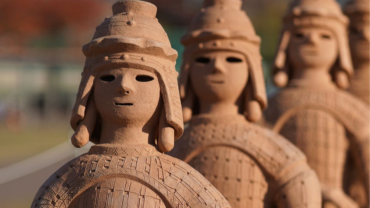 Escribe un artículo en francés sobre: ‘Haniwa’, las ancestrales figuras de barro de Japón rewrite…