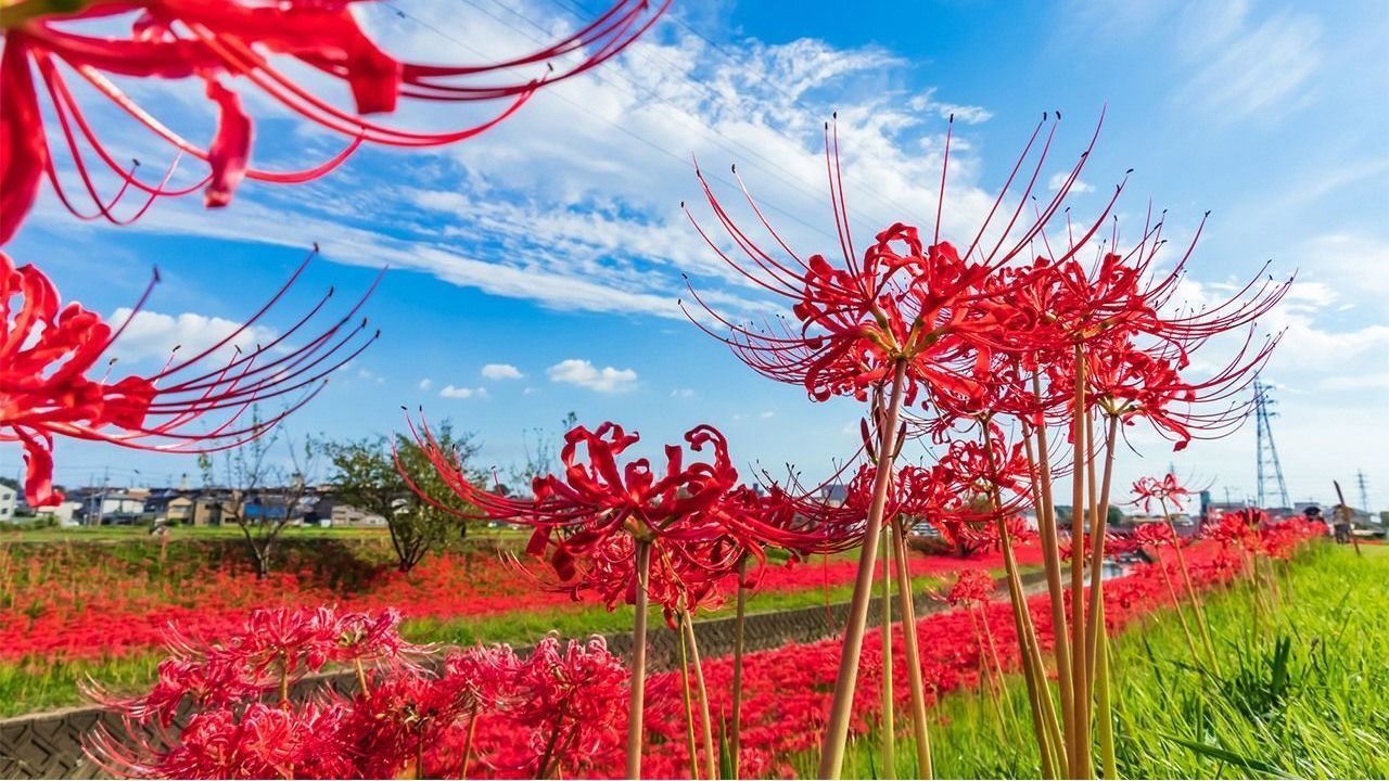 Escribe un artículo en francés sobre: ‘Higanbana’: el lirio araña rojo, heraldo del otoño rewrite…