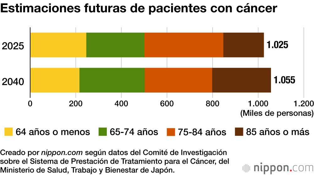 El Comité de Investigación sobre el Sistema de Prestación de Tratamiento para el Cáncer, del Ministerio de Salud, Trabajo y Bienestar, estimó basándose en diversos datos la demanda de tratamiento oncológico y el sistema de oferta médica para 2040, y predijo que el número de pacientes con cáncer (personas con un diagnóstico nuevo de cáncer ese año), que actualmente asciende a 1.025.000, habrá aumentado un 3 %, hasta los 1.055.000; posteriormente esa cifra comenzará a disminuir gradualmente debido a la disminución demográfica causada por el envejecimiento de la población.
