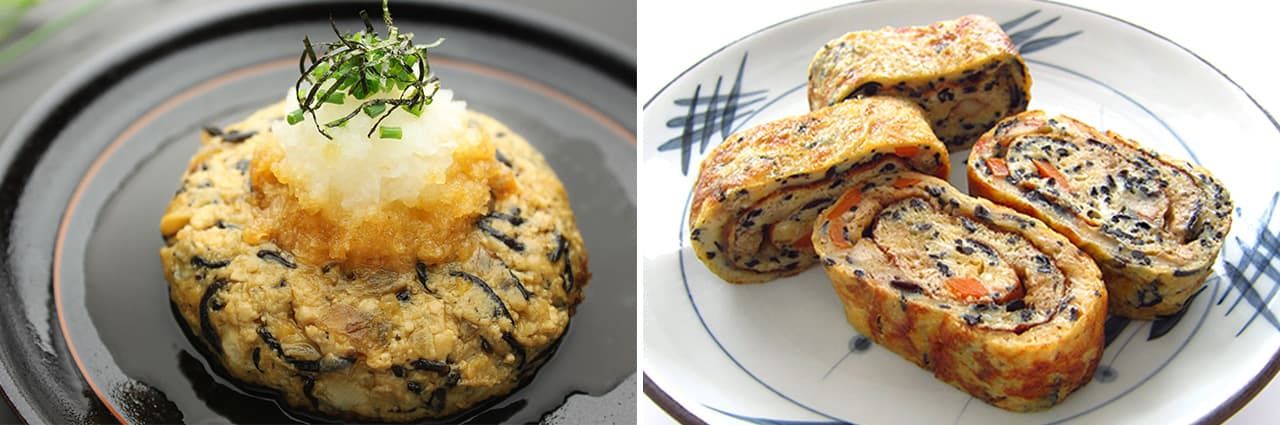 Las hijiki se pueden agregar a hamburguesas de estilo japonés hechas con carne picada de pollo y tōfu, así como a tortillas de huevo, un plato muy popular para los almuerzos. Las hijiki mejoran la apariencia de los platos y aumentan su valor nutricional.