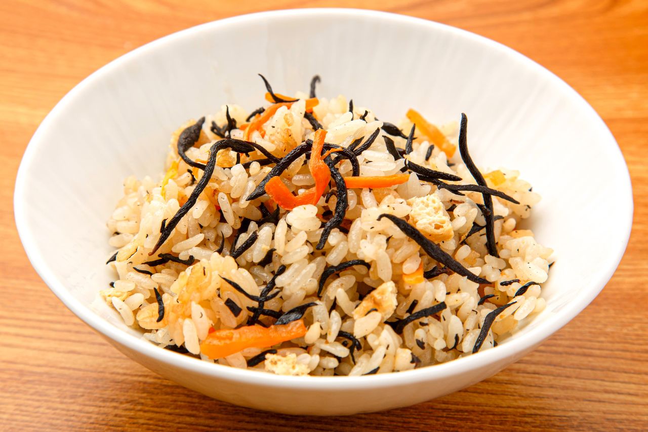 En este plato se usan ingredientes similares a los del guisado de hijiki y se cuecen junto con el arroz. También se puede preparar simplemente mezclando sazonador furikake de hijiki.