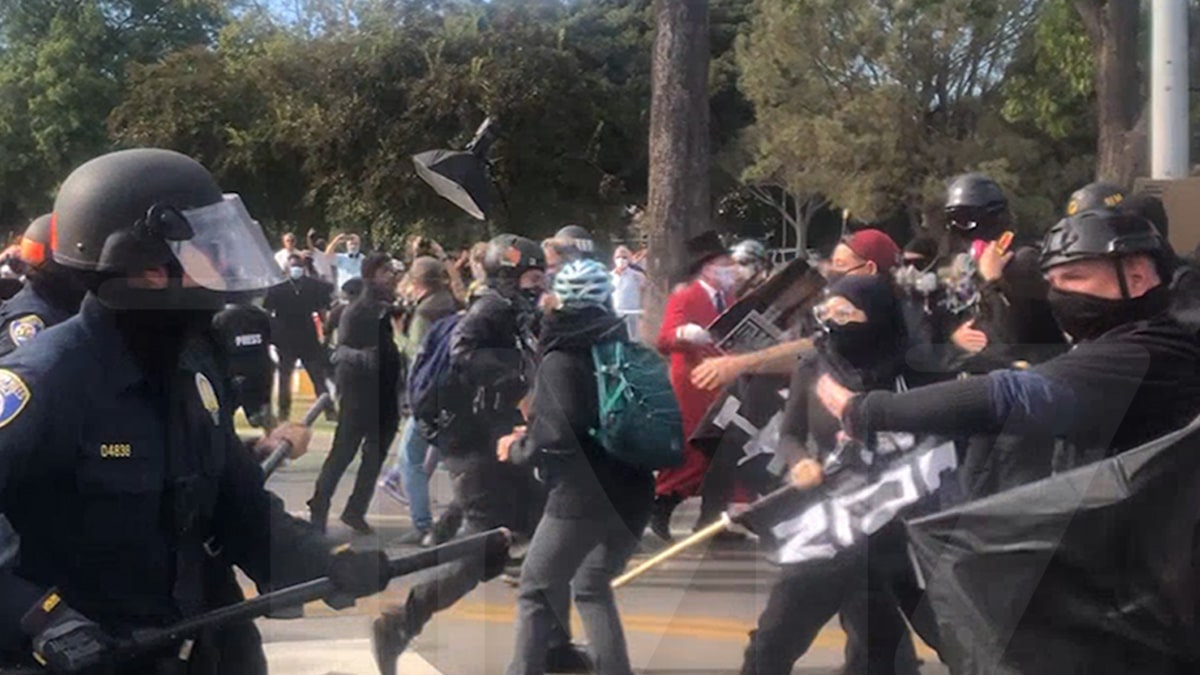 mondo I poliziotti usano i billy club contro i manifestanti pro-Trump e antifascisti Novembre 1, 2020